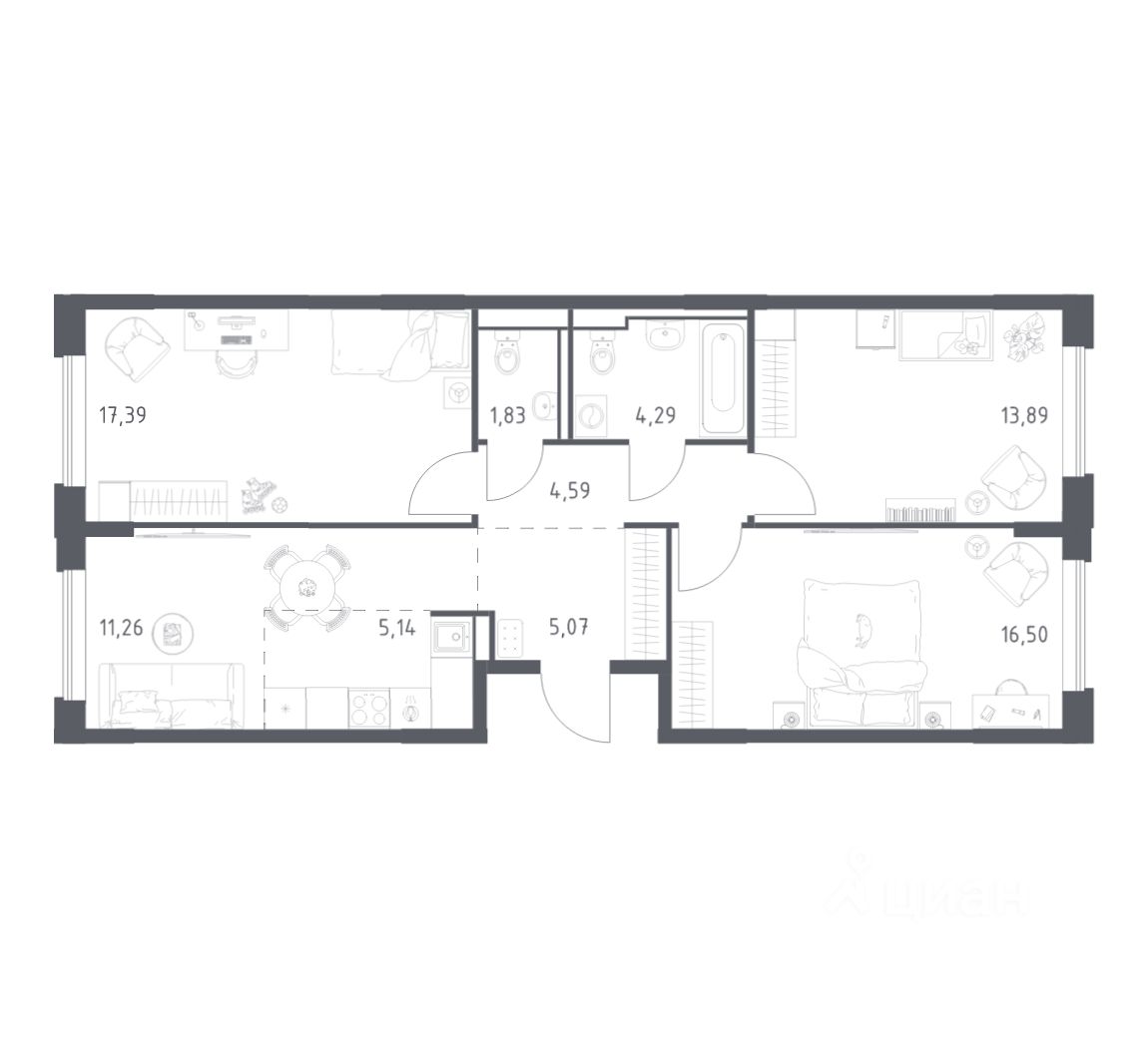Жилая площадь59 м2