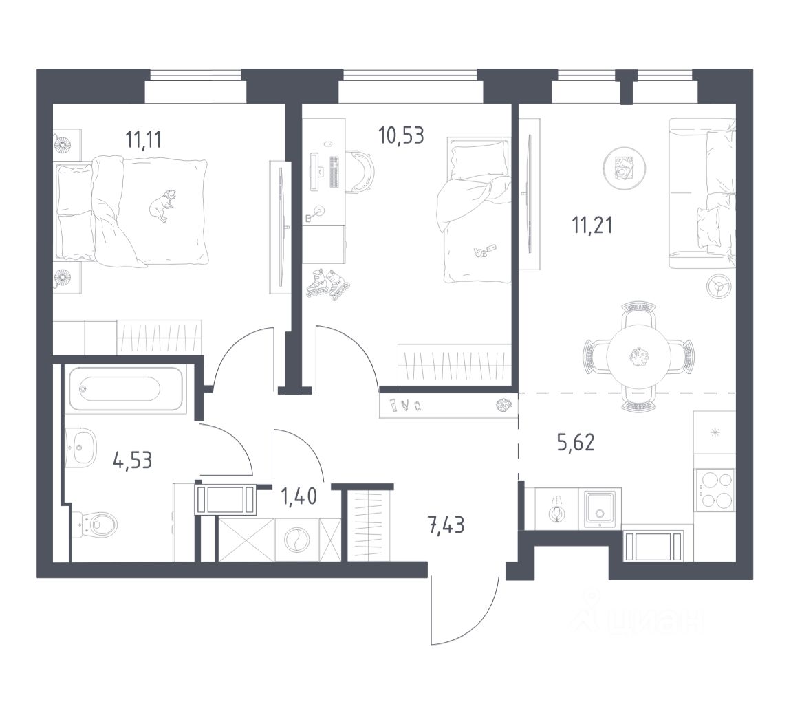 В отделочных работах используем проверенные материалы — сами ездим на завод и следим за качеством. Дизайн выдержан в классической, нейтральной цветовой гамме. В квартире есть всё необходимое от межкомнатных дверей до сантехники.