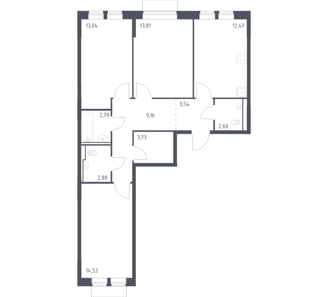 Строим кварталы для жизни с заботой о будущем. Предлагается 3-комнатная квартира комфорт-класса площадью 78,55 кв.м в корпусе 4 на 16-м этаже, в жилом комплексе ''Молжаниново''.