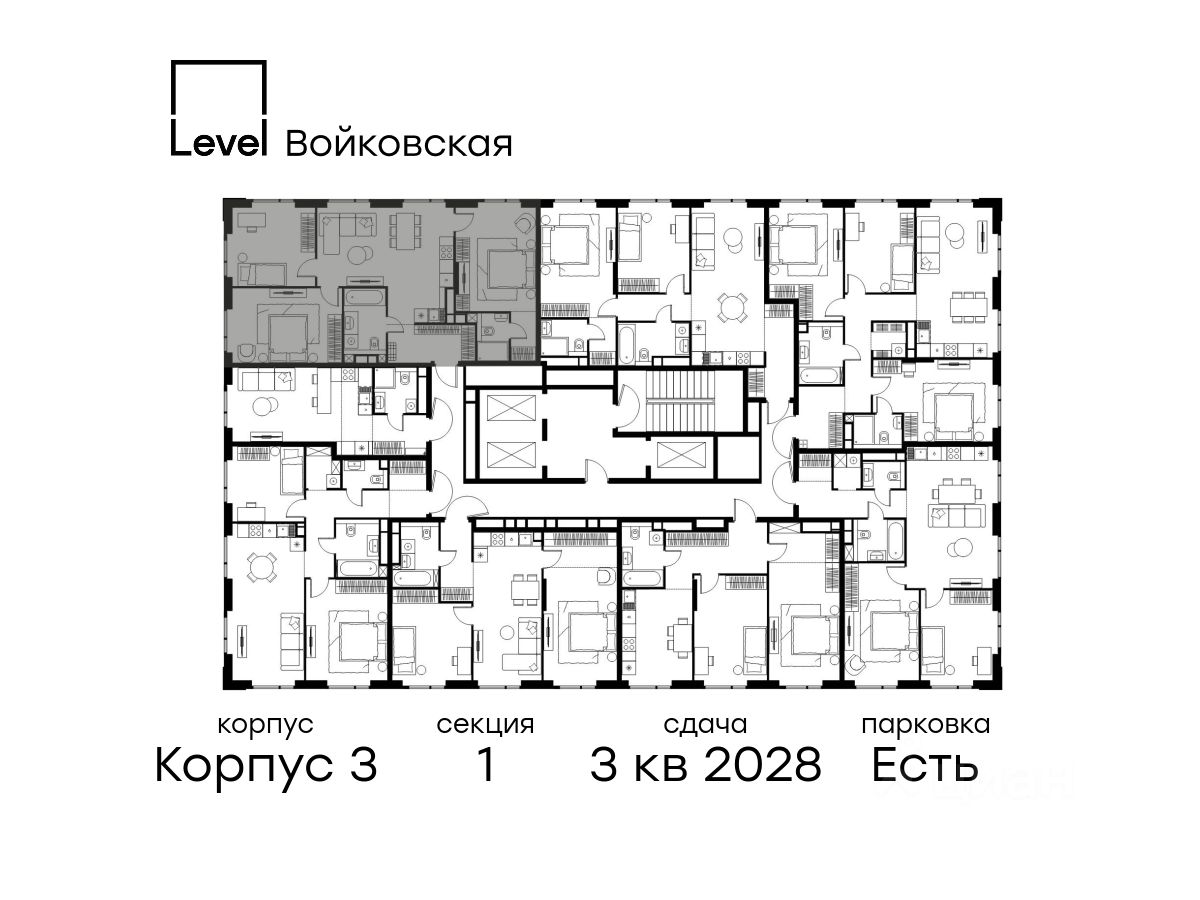Продается 3-комнатная квартира площадью 88.70 кв. м без отделки. Квартира находится на 13 этаже 20-этажного корпуса 3, в новом жилом комплексе бизнес-класса Level Войковская, расположенном рядом с живописным заповедником ''Покровское-Стрешнево'' (застройщик - компания Level Group/Левел групп).
