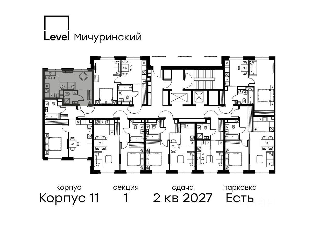 продам 1-к, Левел Мичуринский ЖК, 1119 029 023 ₽