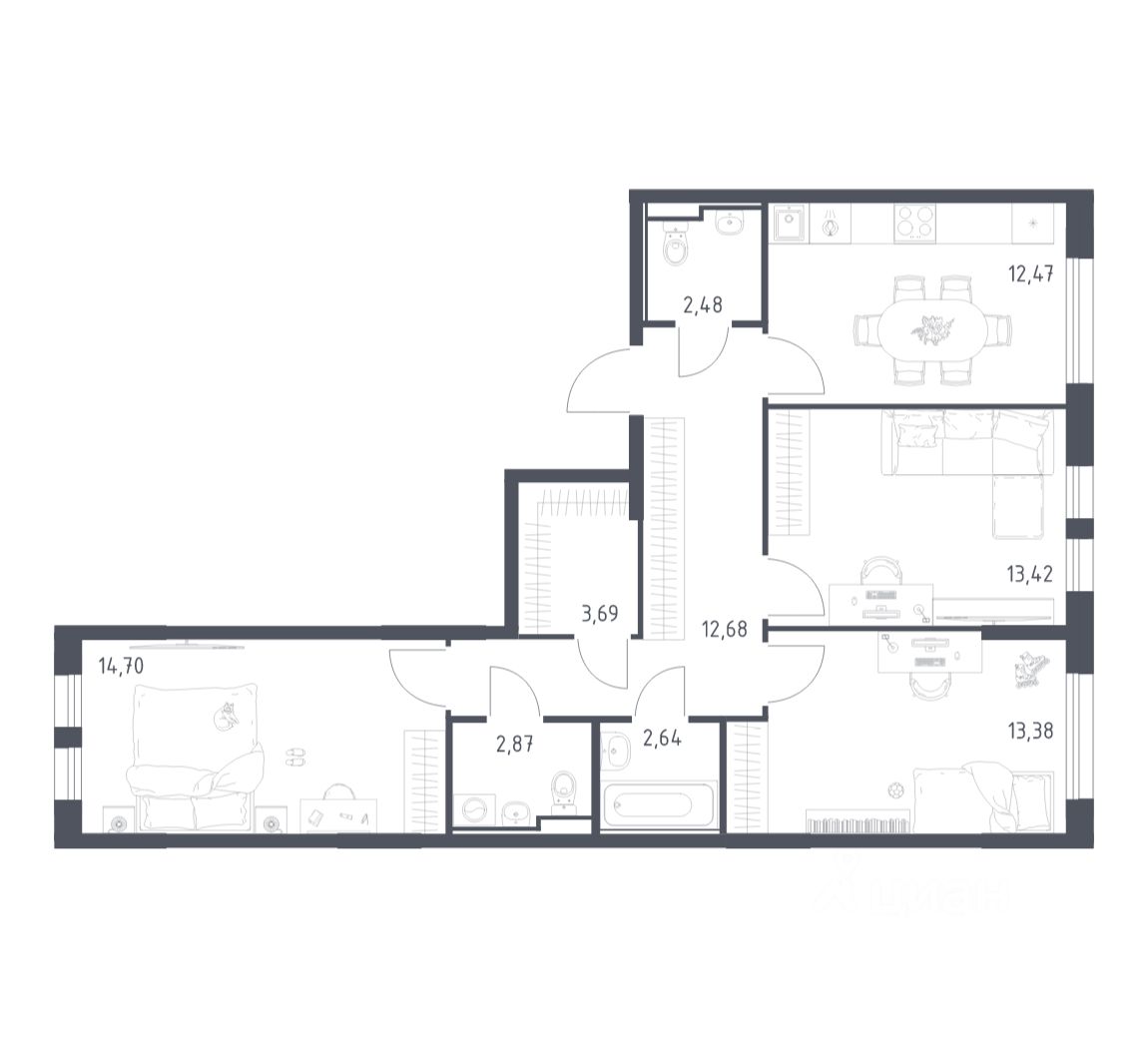 Строим кварталы для жизни с заботой о будущем. Предлагается 3-комнатная квартира комфорт-класса площадью 78,33 кв.м в корпусе 20 на 10-м этаже, в жилом комплексе ''Остафьево''.