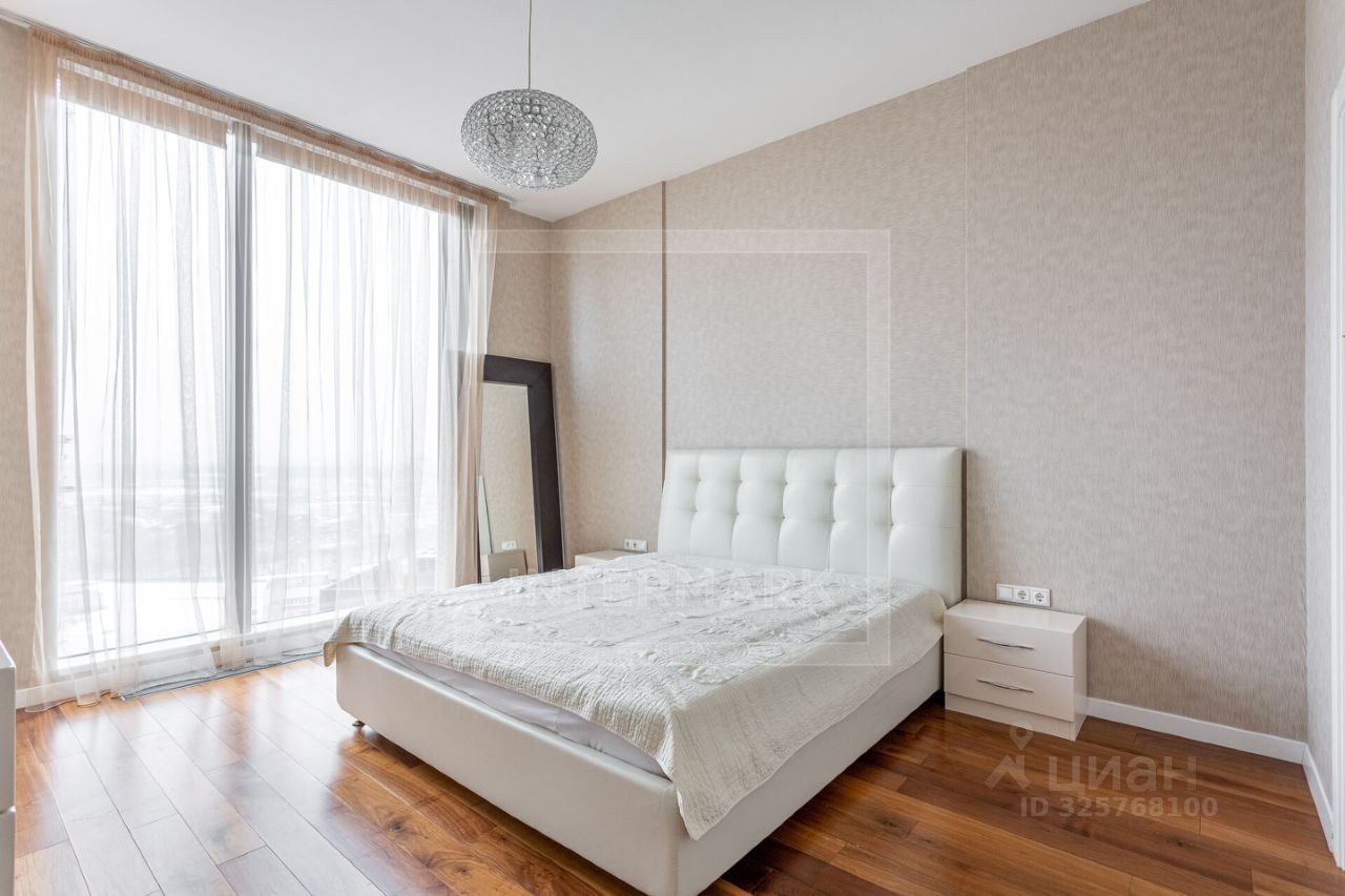 ID 32685: Светлая 4-комнатная квартира в жилом комплексе напротив Мосфильма. Современный ремонт с использованием качественных материалов, бытовая техника от известных производителей, частично меблирована, установлена система кондиционирования. Функциональная планировка: кухня-столовая-гостиная в едином пространстве, 3 спальни, в главной спальне гардеробная, ванная комната с ванной и душем, гостевой туалет с душем и постирочной комнатой. Высокий этаж, панорамный вид на город. Охраняемая территория, строгая пропускная система, наземная парковка. Желательно без крупных животных.