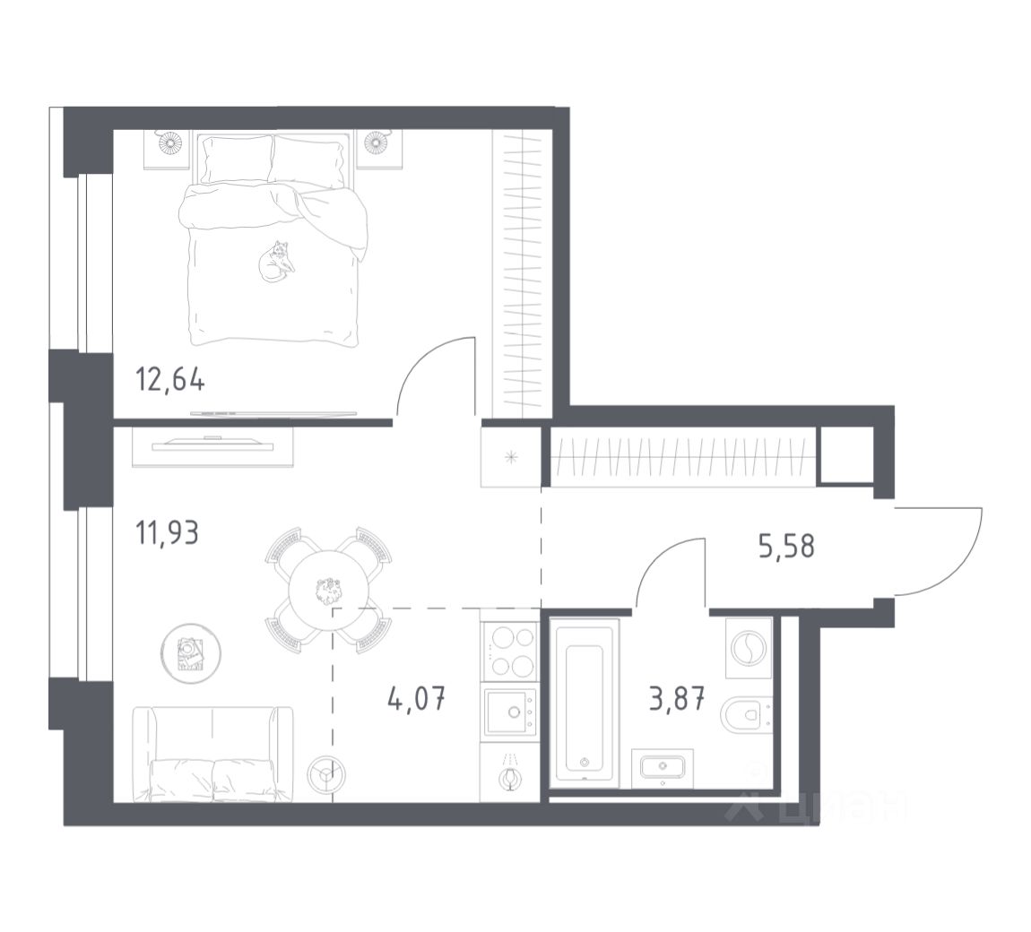 Строим кварталы для жизни с заботой о будущем. Предлагаются 1-комнатные апартаменты бизнес-класса площадью 38,09 кв.м в корпусе 1 на 8-м этаже, в жилом комплексе ''Верейская 41''.
