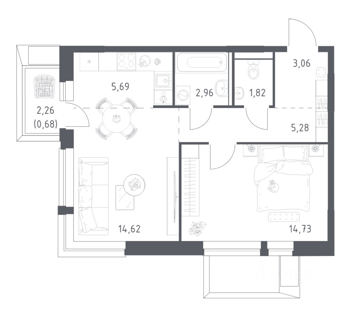 продам 1-к, Егорово Парк ЖК, 3.312 125 464 ₽