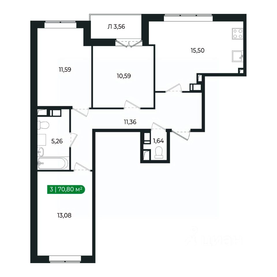 Напрямую продаётся 3 комнатная квартира 16 на 2 этаже (из 8) общей площадью 70,8 м2 в III очереди в жилом комплексе Сертолово Парк от застройщика ГК Алгоритм.
