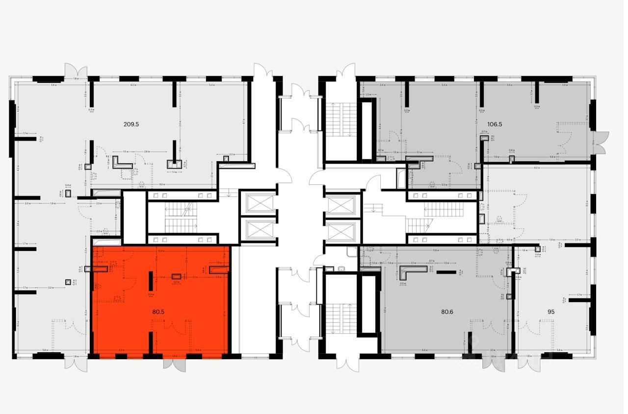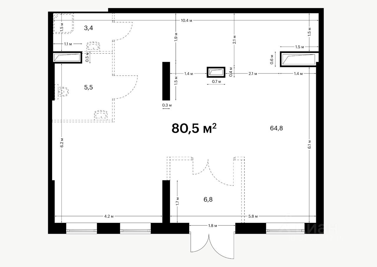 Помещение 80,5 м2 располагается на 1 этаже 33 этажного дома, открытая планировка, много витрин, отдельный вход, высота потолка 3,5 м. Электрическая мощность 16 кВт. Парковка перед фасадом. Место для размещения рекламы на фасаде.