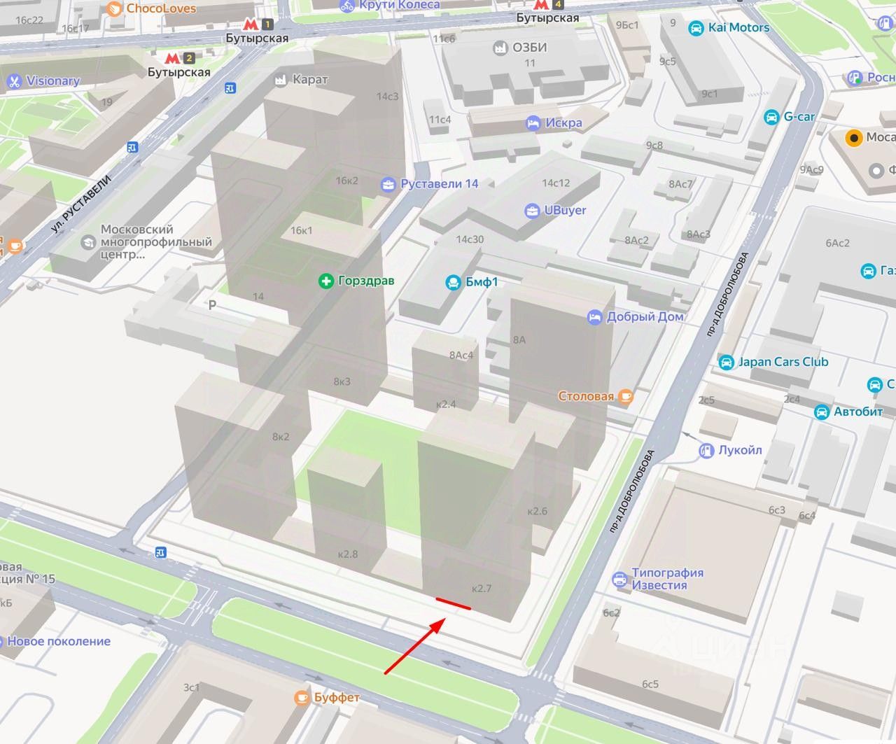 Аренда торгового помещения 80,5 м2 в жилой комплексе ''Руставели 14'', корпус 2.7, улица Добролюбова 8к1. (10 минут пешком от метро Бутырская). 1-я линия домов.