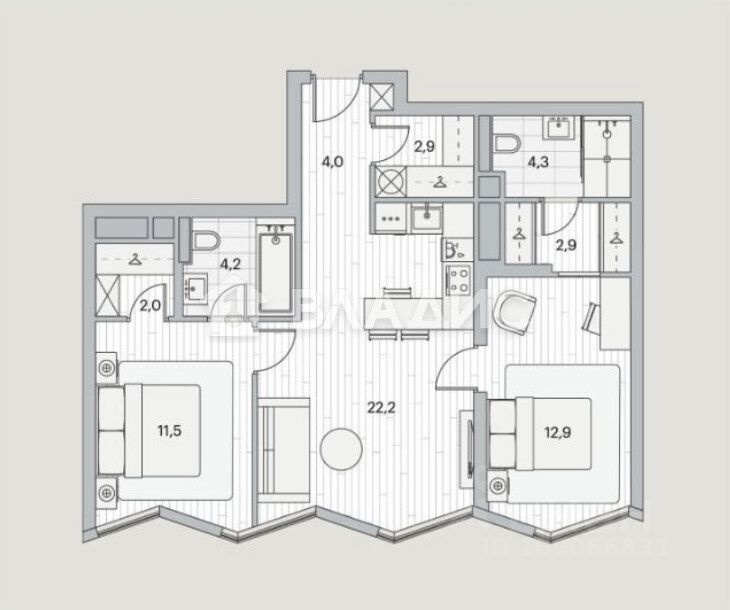 Площадь и планировка: общая площадь квартиры составляет 66 кв. м, включая просторную кухню-гостиную 22,2 кв. м, две мастер-спальни 12,9 кв. м и 11,5 кв. м, каждая из которых имеет собственный санузел и гардеробную комнату, а также имеется гардеробная для верхней одежде при входе в квартиру. Квартира идеально подойдет как для семьи с детьми, так и для бизнес-профессионалов, которым важно иметь личное пространство. Высота потолков 3,2 м создаёт ощущение простора.