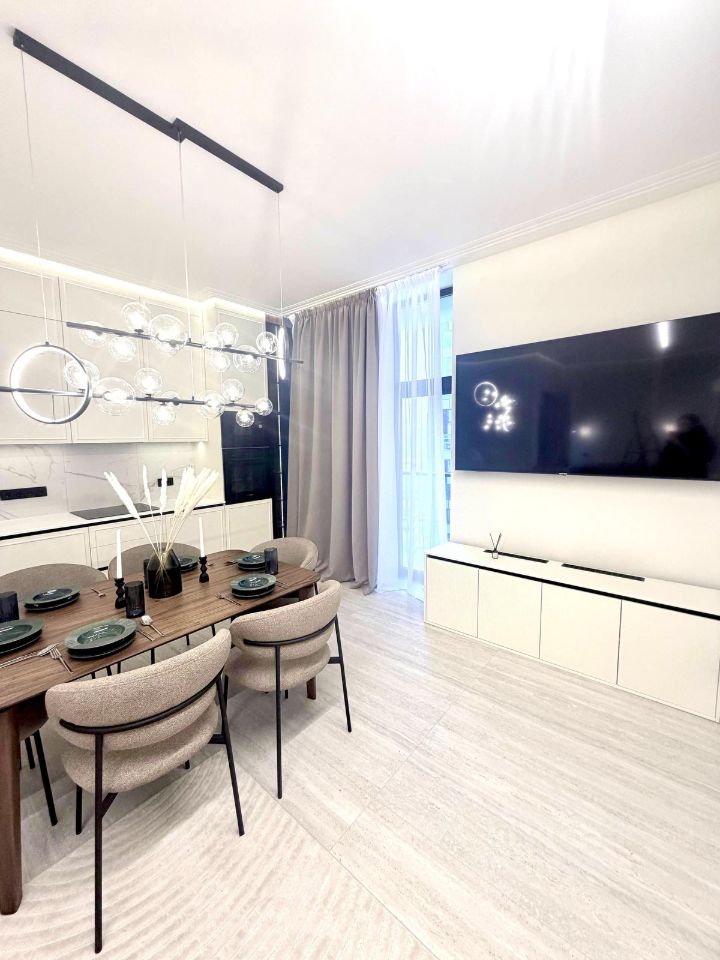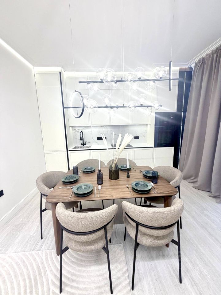 Квартира с евроремонтом, выполненным в современных светлых тонах. Просторная кухня оснащена всеми необходимыми бытовыми приборами, что делает ее идеальным местом для семейных ужинов и встреч с друзьями. В комнатах установлена стильная и удобная мебель.