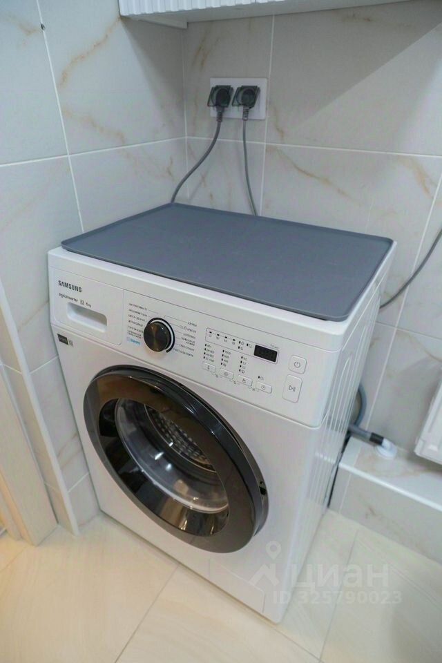 В санузле — стиральная машина, большая ванна и стильная сантехника. В спальне - телевизор, кондиционер, двухспальная кровать с подъемным механизмом, большой шкаф-купе, просторная лоджия, которую также можно использовать для хранения вещей.
