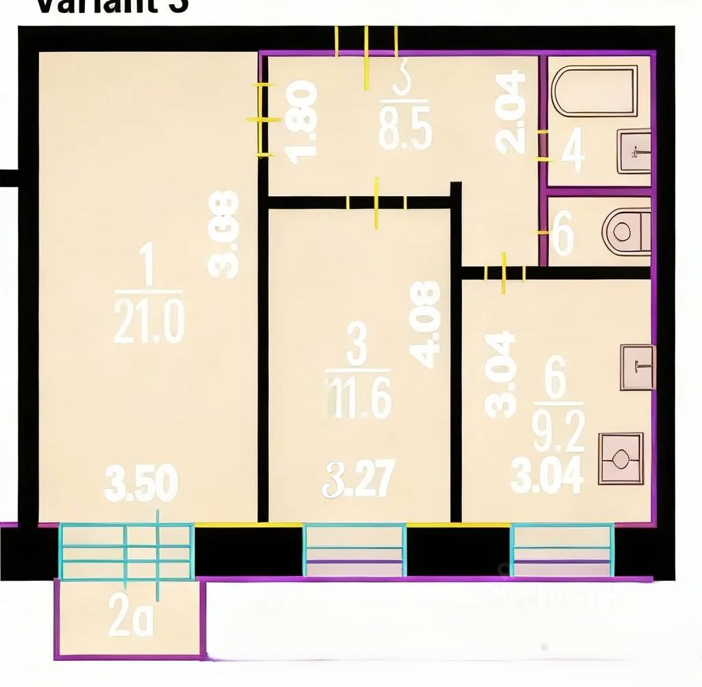 Светлая двухкомнатная квартира с удобной функциональной планировкой. Комнаты изолированные: одна более просторная, с естественным дневным светом, другая — подходит для спальни или кабинета.
