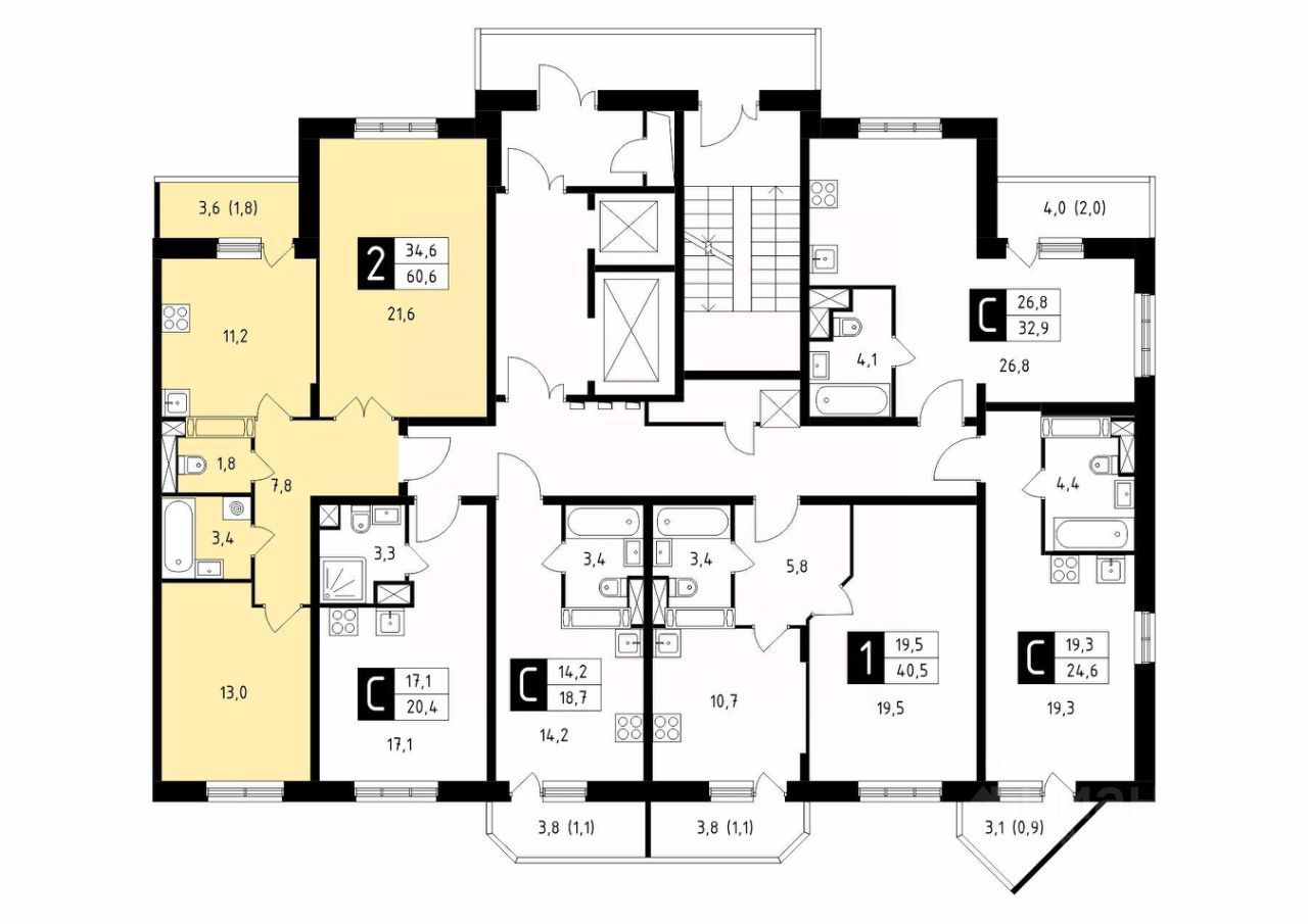 Продаётся 2-комнатная квартира в сданном доме (Корпус 43), срок сдачи: 4-кв. 2025, общей площадью 60.60 кв.м., на 5 этаже.