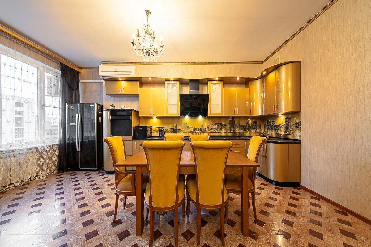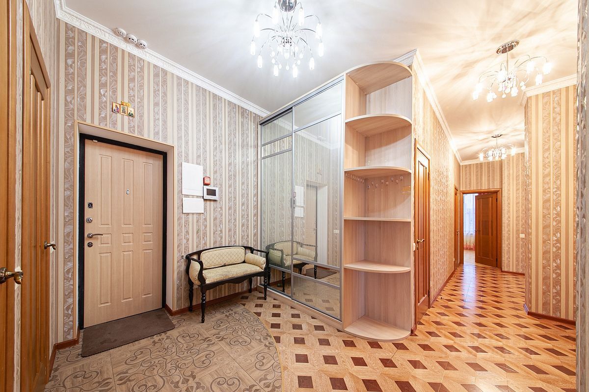 Общая площадь квартиры составляет 166.2 кв. м, а высота потолков — 3 метра.