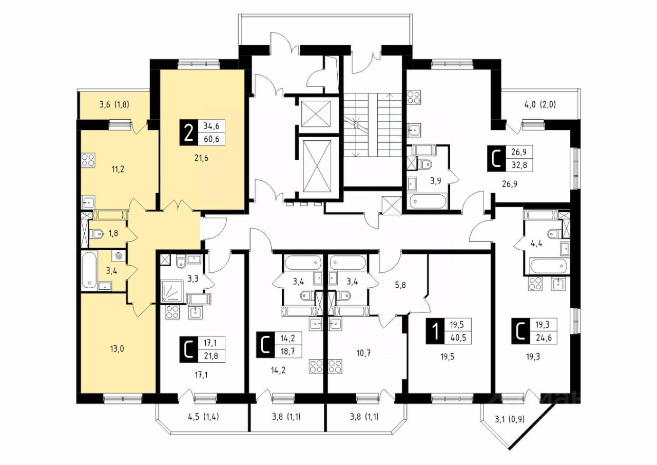 Продаётся 2-комнатная квартира в сданном доме (Корпус 43), срок сдачи: 4-кв. 2025, общей площадью 60.60 кв.м., на 15 этаже.