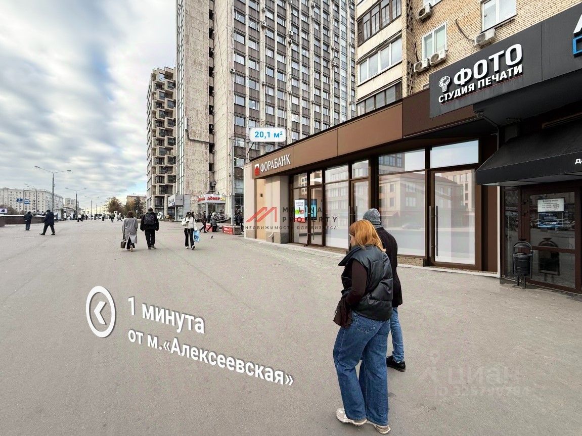 Продажа торгового помещения 20,1 м2 с арендатором Фора-Банк на Проспекте Мира, д. 97 (3 минуты пешком от метро Алексеева). 1 линия домов.