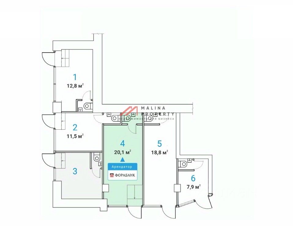 Арендатор: Фора-Банк, месячная арендная плата 490 000 рублей. Договор аренды подписан на 5 лет с ноября 2025 года. Ежегодная индексация 5%. Окупаемость 9 лет.