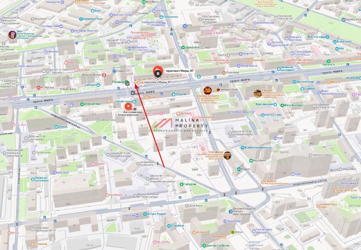 Помещения расположены в крупном сложившемся жилом районе с высокой плотностью застройки и развитой инфраструктурой. В окружении находятся ''ВДНХ'', Телецентр и парк ''Останкино'', Деловой центр с апарт-комплексом ''Парк Мира'', театр танца Аллы Духовой ''Todes''.