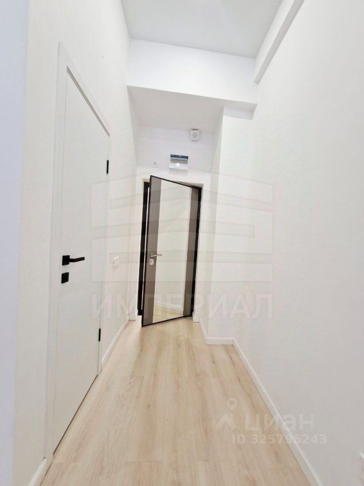 На стенах поклеены обои под покраску, на полу постелен ламинат с плинтусами и откосами. Есть вытяжная вентиляция в санузле и на кухне, выходы хв/гв, место под раковину на кухне. Кроме того, в помещениях уже есть выключатели освещения, розетки для бытовой техники и роутера, а также сделаны закладные для оптоволокна для интернета.