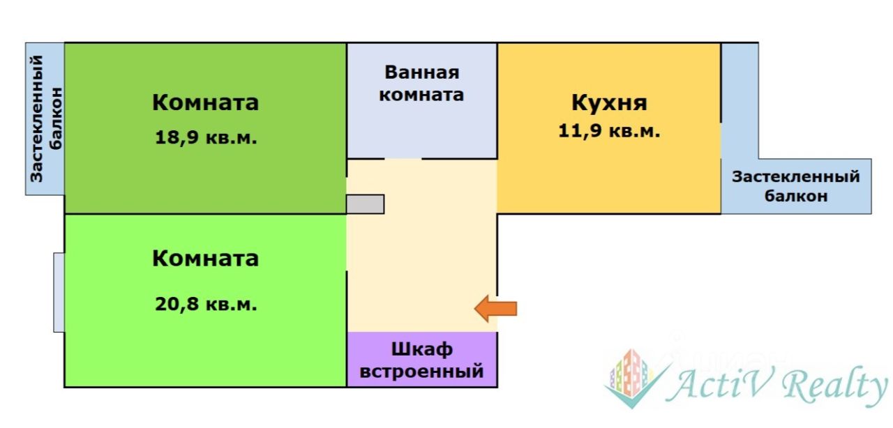 + комнаты изолированные 18,9 и 20,8 кв.м.