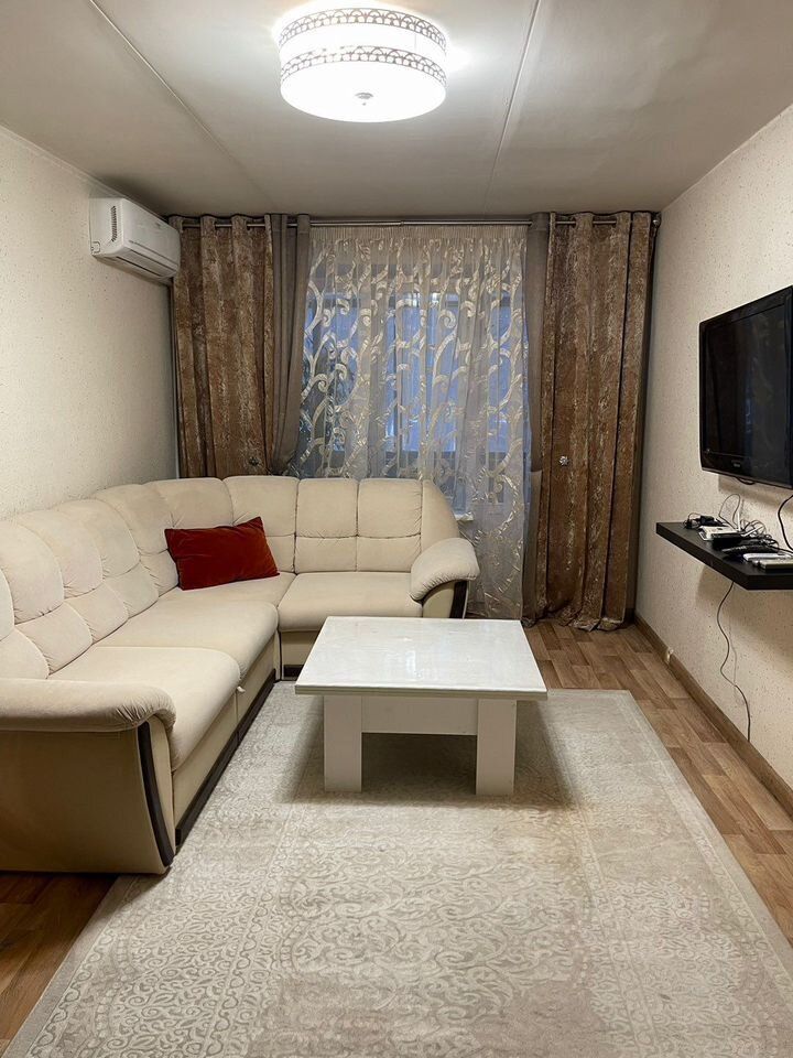 Квартира с евроремонтом, что создаёт атмосферу уюта и комфорта. Здесь есть всё необходимое для жизни: кондиционер, холодильник, микроволновая печь, телевизор и стиральная машина. На кухне и в комнатах установлена мебель. Санузел совмещённый, в ванной комнате установлена ванна. Также есть балкон для приятных вечеров на свежем воздухе.