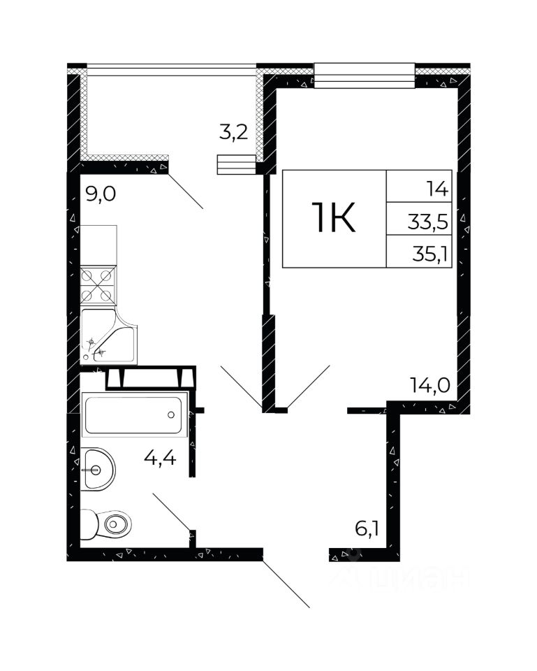 Общая площадь35,1 м2