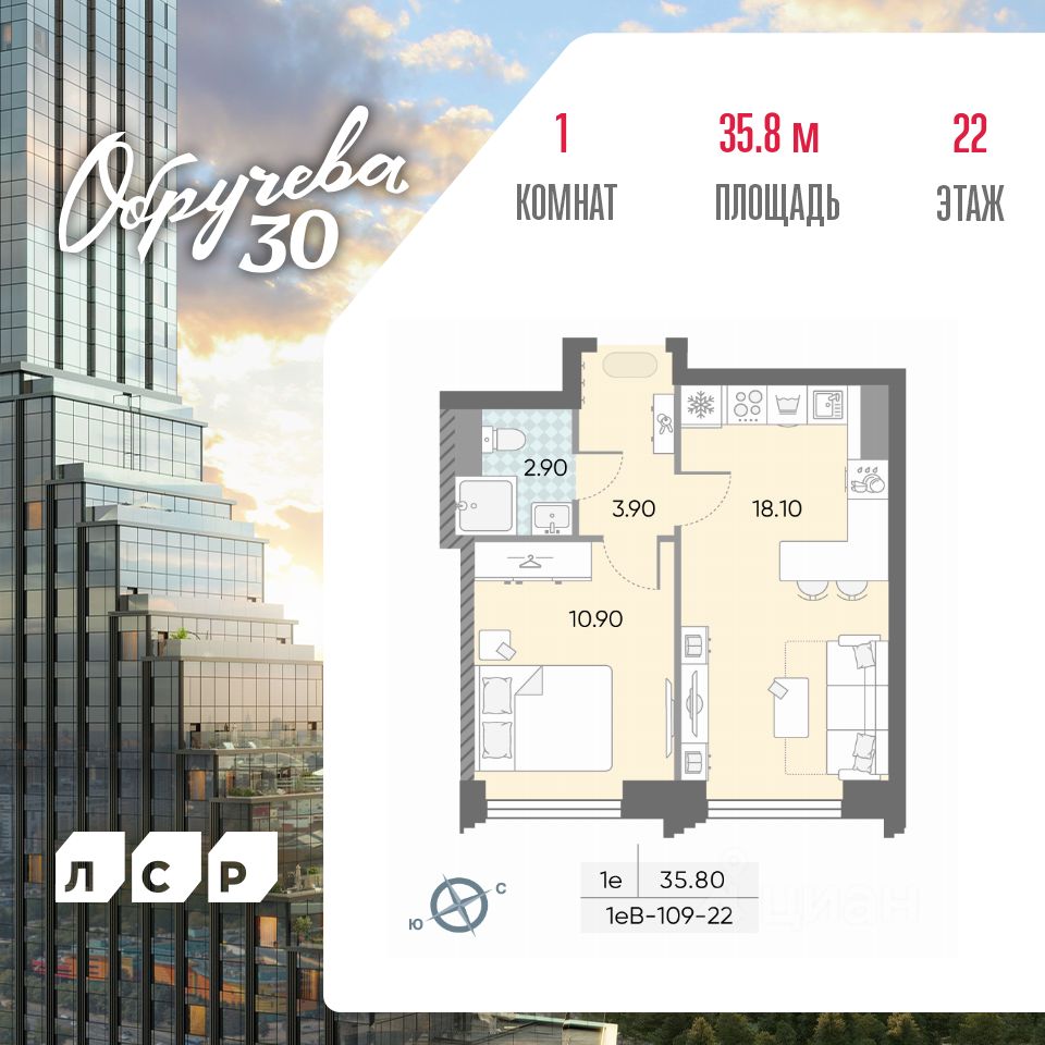 Продается 1-комн. кв-ра площадью 35.80 кв.м на 22 этаже 45 этажного монолитного дома в ЖК ''ОБРУЧЕВА 30'' от Группа ЛСР. ''Обручева 30'' - дом бизнес-класса в престижном районе ЮЗАО и шаговой доступности от станции метро ''Калужская''. Два корпуса неповторимой формы от бюро KAMEN Architects с уникальными форматами квартир: от двухуровневых с камином до квартир с террасой. ''Клубная'' инфраструктура для резидентов: студии йоги и сайкла, тренажерные залы, коворкинг-зона, конференц-залы, кинозал и детские игровые комнаты.