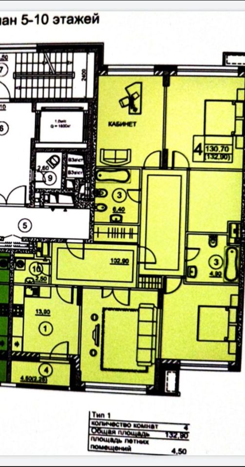 В продаже 4-комнатная квартира площадью 133 м2 на 8 этаже в 15-этажной секции ЖК Суббота в историческом центре Москвы.