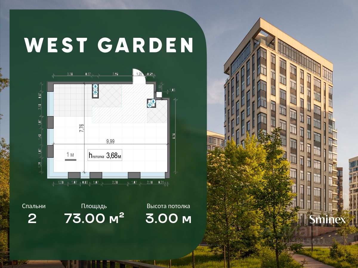 West Garden - это собрание клубных домов высотой 12-14 этажей в собственном парке 16 гектаров вдоль реки. Просторный среднеэтажный квартал расположен на Минской улице, в респектабельном Западном округе столицы. Вокруг премиальное окружение и более 1000 гектаров парков.