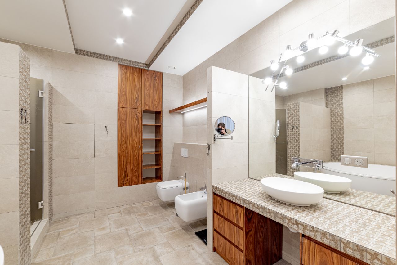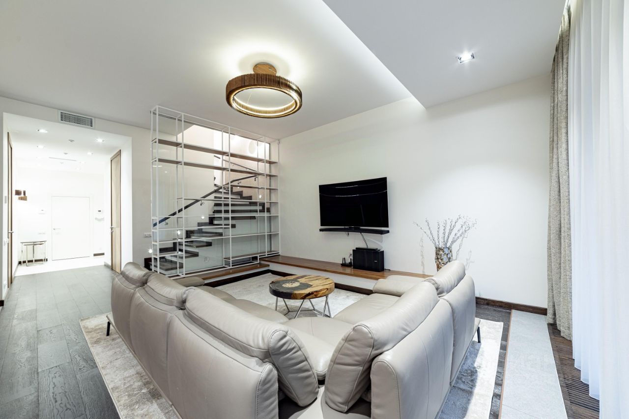 Квартира идеально спланирована На верхнем уровне - три спальни , включая мастер-блок ( спальня, просторный санузел, вместительная гардеробная) , кабинет, спортзал . На нижнем - просторная гостиная - столовая, многофункциональная кухонная зона , прачечная, гостевой санузел с душевой кабиной и просторная сезонная гардеробная)