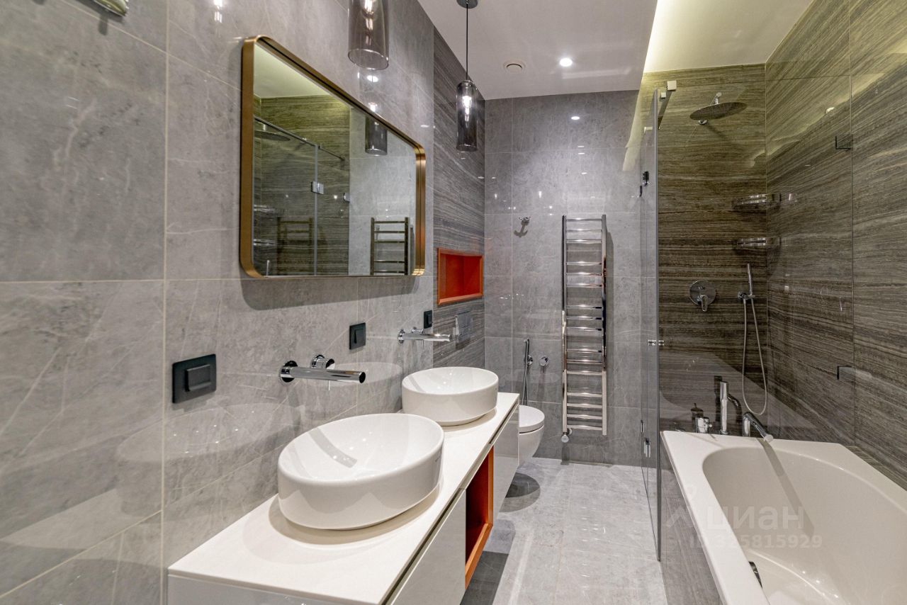 Планировка: -кухня-гостиная около 45 метров(есть спальные места, диван раскладывается) -спальня со своим просторным гардеробом(ортопедический матрас Орматек, приличная кровать) -2 отдельных гардероба(1 в прихожей, 1 чуть дальше) -сан. узел N1 гостевой -сан. узел N2 основной(ванная + туалет с гигиеническим душем + душевая кабина)