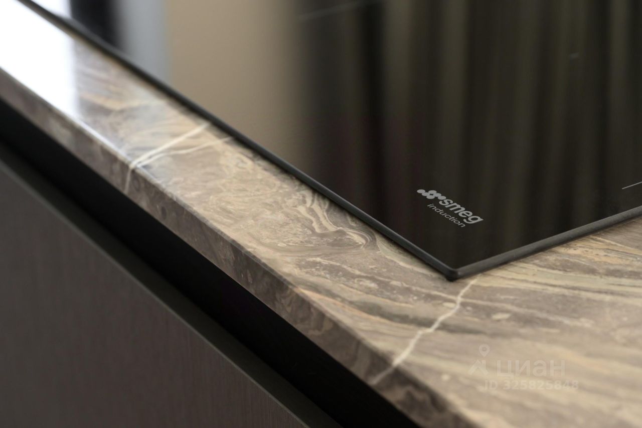 В каждой квартире установлены кухни от итальянского бренда Cesar со встроенной бытовой техникой премиальной линейки Smeg. Кухонный остров, столешница и фартук кухни выполнены из эксклюзивного итальянского мрамора Arabescato Grigio Orobico, одним из лучших видов мрамора на итальянском рынке натуральных отделочных камней.