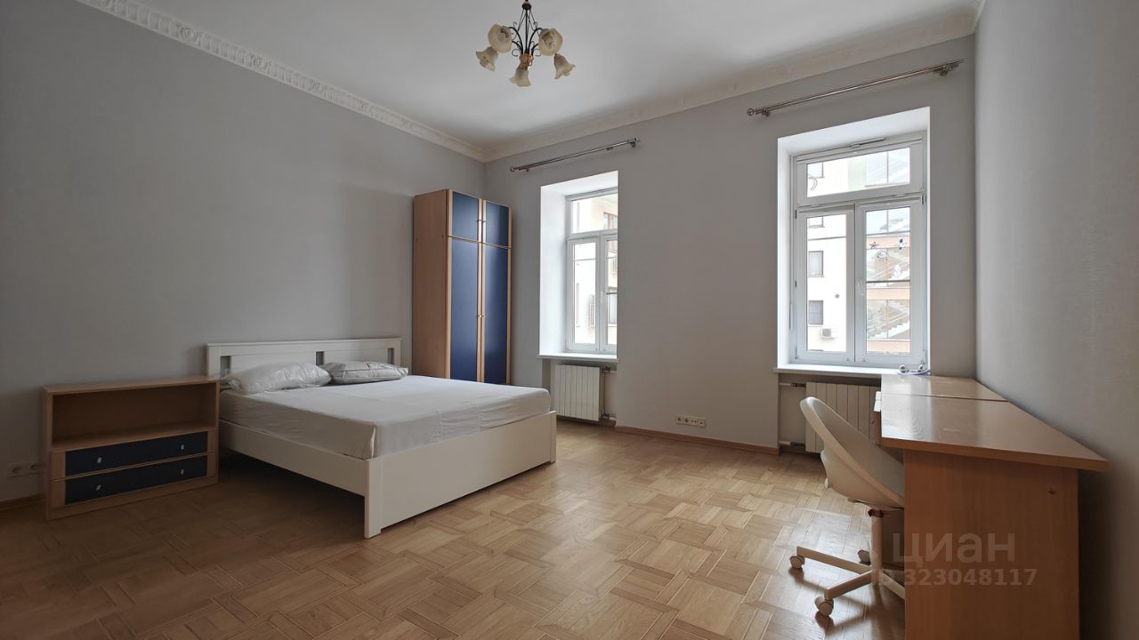 Сдаётся прекрасная 4- комнатная квартира в клубном доме в историческом центре Москвы,Уланский переулок, дом 19 .Элегантный клубный дом, созданный в начале XXI века из двух домовладений 1881 года, удачно сочетает современный комфорт с духом старой Москвы. Парадный вход, широкая мраморная лестница, просторный холл, высокие потолки (около 5 м) и массивные стены толщиной 90 см создают атмосферу уюта и тишины. Зимой стены долго сохраняют тепло, летом — прохладу. О квартире: •Площадь: 173,5 м² •Потолки: 4,8 м •Окна выходят в тихий внутренний двор, •4 спальни, 2 ванные комнаты, кухня 16 м² с белой мебелью и встроенной бытовой техникой, •Гостиная 50 м² с домашним кинотеатром, •Ремонт выполнен в классическом стиле, •Каждая комната имеет по два больших оконных проёма, на окнах установлены жалюзи, •Установлена энергоэффективная подсветка с реверсивным управлением (включение/выключение света из любой точки квартиры). Квартира очень светлая, тёплая и тихая.Закрытая охраняемая территория,въезд по пульту,во дворе — две детские площадки и гостевая парковка,в доме всего 16 квартир, каждая с индивидуальным выходом к лифту. Видеонаблюдение и круглосуточная охрана, видеодомофон. Район с развитой инфраструктурой, в шаговой доступности — кафе, магазины, театры, парки и скверы, всё для комфортного проживания. Показы и заселение по договоренности.