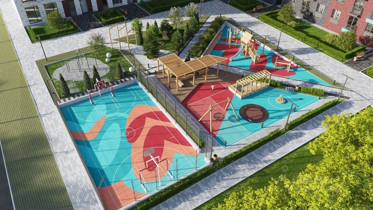 Дворы: Общая площадь двора квартала, ограниченного домами 1, 3, 4, 5 и 6 составит без малого 3 тысячи квадратных метров! Горки и качели — красивые и безопасные. Благодаря качественным материалам они сохранят свой внешний вид долгое время.