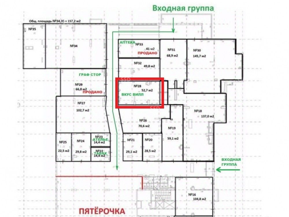 Коммерческие условия: Стоимость - 18 972 000 рублей с НДС. Стоимость за 1 м² - 360 000 рублей с НДС Арендатор: ВкусВилл (МАП = 125 000 рублей, 11-месячный договор аренды, индексация 5%) Эксплуатационный платежи: 2700 руб. за 1 м²/год без НДС Форма сделки: ДКПН