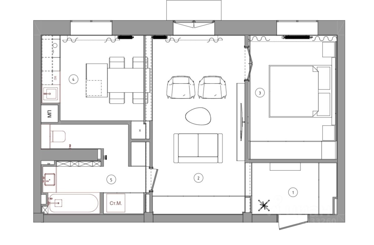 Произведена полная замена всех коммуникаций, сделана новая разводка сантехники, электрики, установлено качественное остекление и современные радиаторы, предусмотрено много мест хранения. В квартире выполнена узаконенная перепланировка, заведена электрическая мощность для установки электрической плиты, организована большая кухня-гостиная с балконом, отдельная спальня.