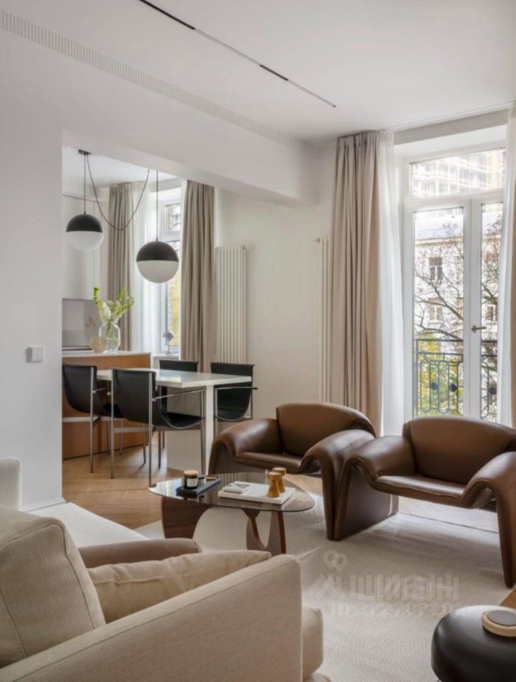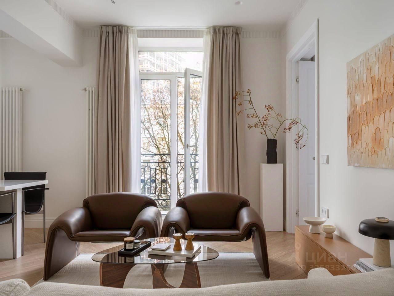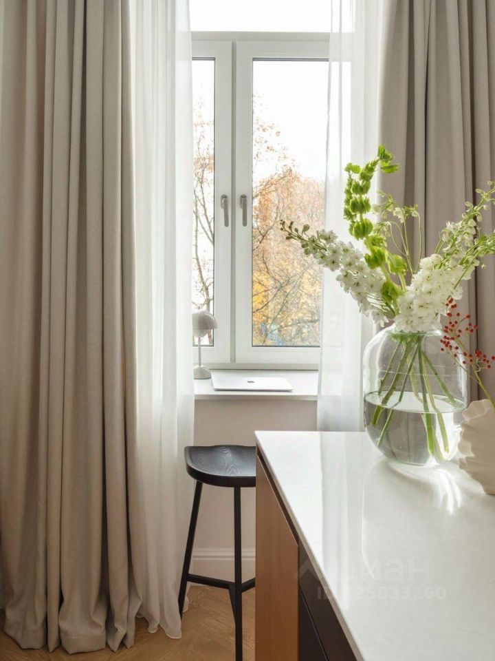 Окна квартиры выходят в тихий зеленый двор, с балкона открывается потрясающий вид на Москва-Сити.
