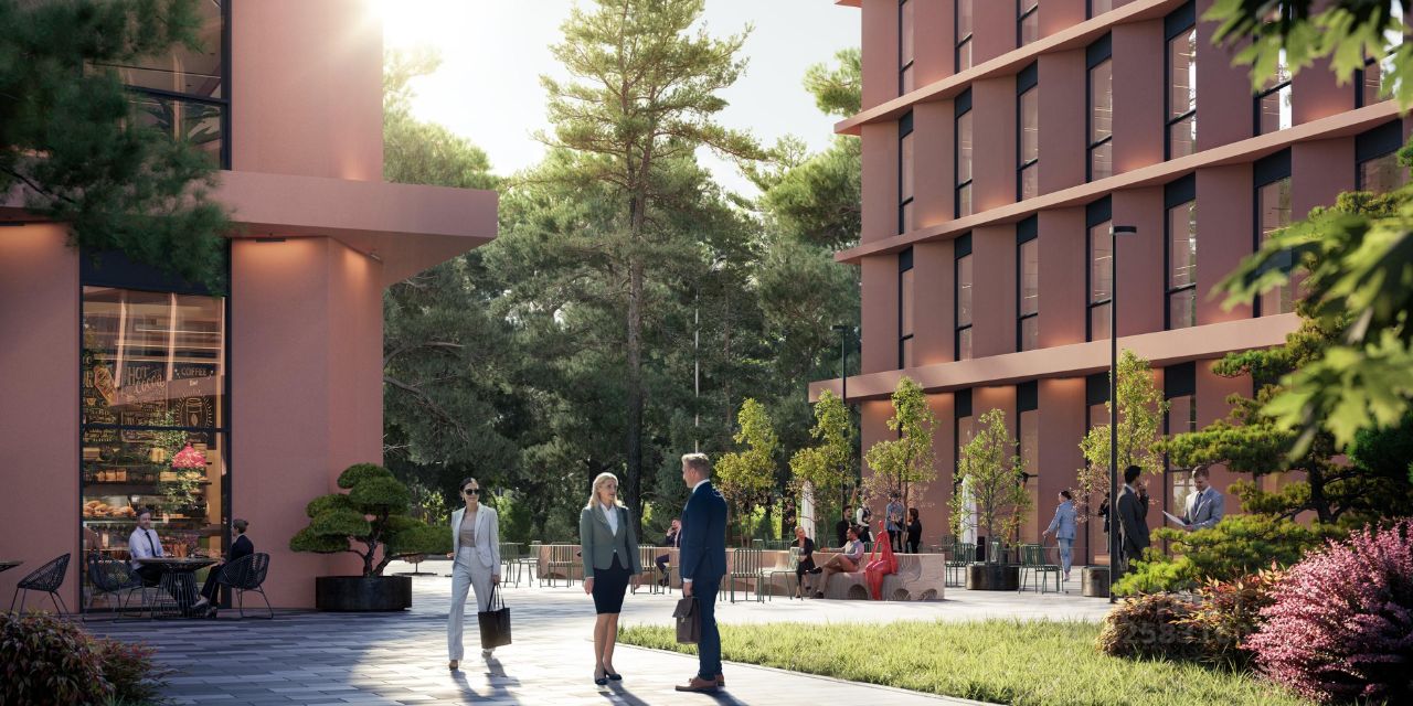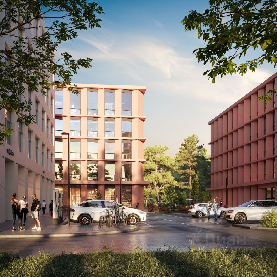 Инфраструктура: -Благоустроенная территория с прилегающей лесополосой -Прогулочный бульвар с кафе и ресторанами -Природный коворкинг в окружении леса -На первых этажах офисных зданий просторные лобби с комфортной зоной ожидания, супермаркет, торговые помещения, отделения банков и сервисных служб, фитнес-студия -Охраняемый наземный паркинг -Зарядные станции для электромобилей