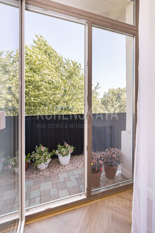 В квартире очень приятная энергетика! Светлое пространство для вашей комфортной жизни! Окна квартиры выходят на 2-е стороны, в тихий двор и на Смоленский бульвар. Выполнен современный ремонт из качественных отделочных материалов. Дизайн интерьера выдержан в неоклассическом стиле. Полная комплектация квартиры мебелью, техникой и сантехникой. Установлены новые качественные стеклопакеты, двери.