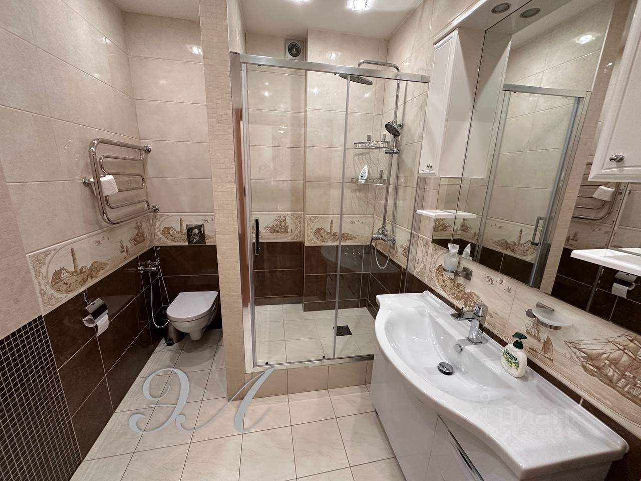 Ванная комната новая душевая кабина, подогрев пола.