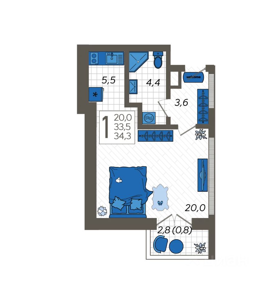 Продаётся студия в сданном доме (Литер 6), срок сдачи: III-кв. 2024, общей площадью 34.3 кв.м., на 4 этаже. Жилой комплекс ''Летний'' расположен в ущелье реки Кудепста.