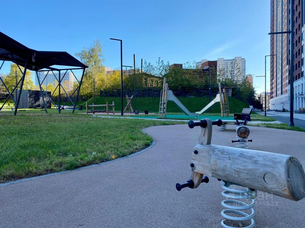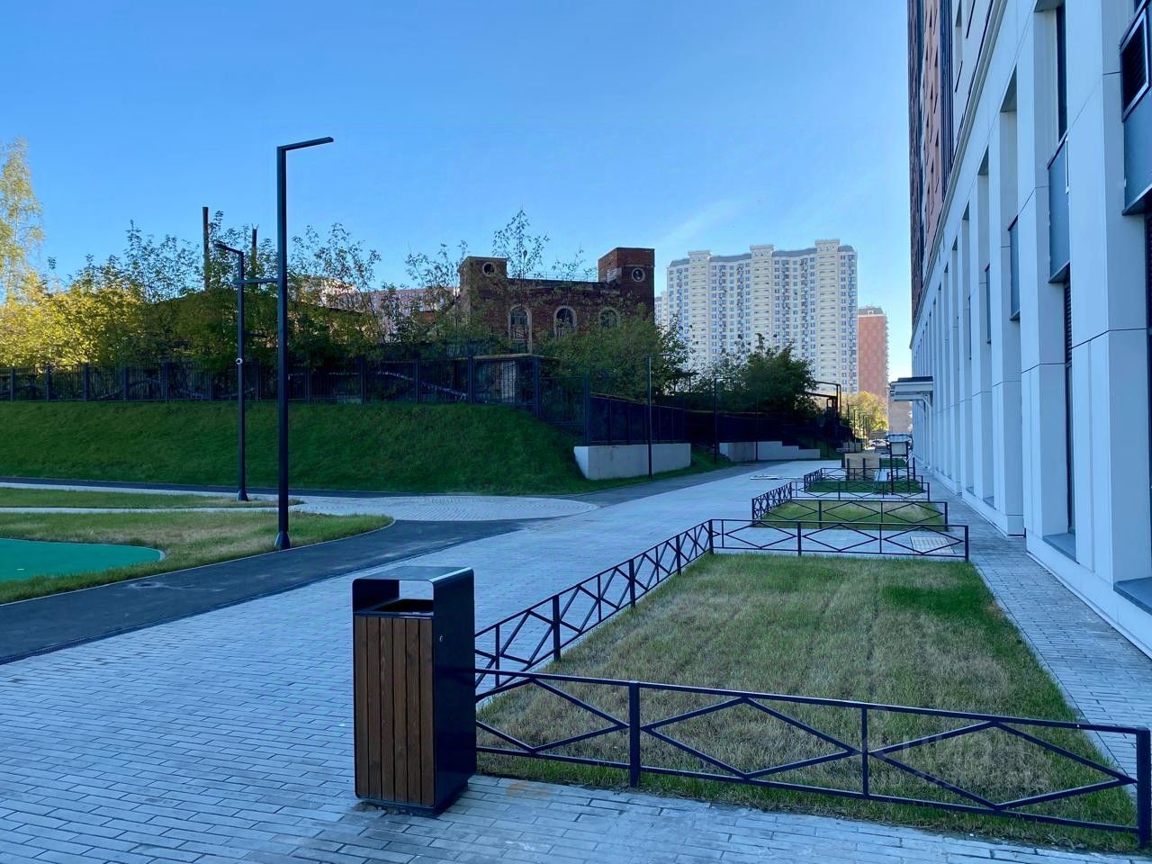 На территории ЖК уютный, красивый двор без машин, территория огорожена.