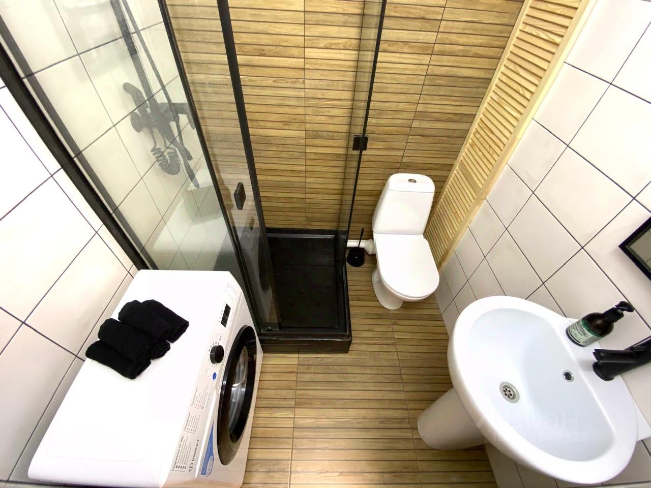 Современный сан. узел, с просторной душевой кабиной.