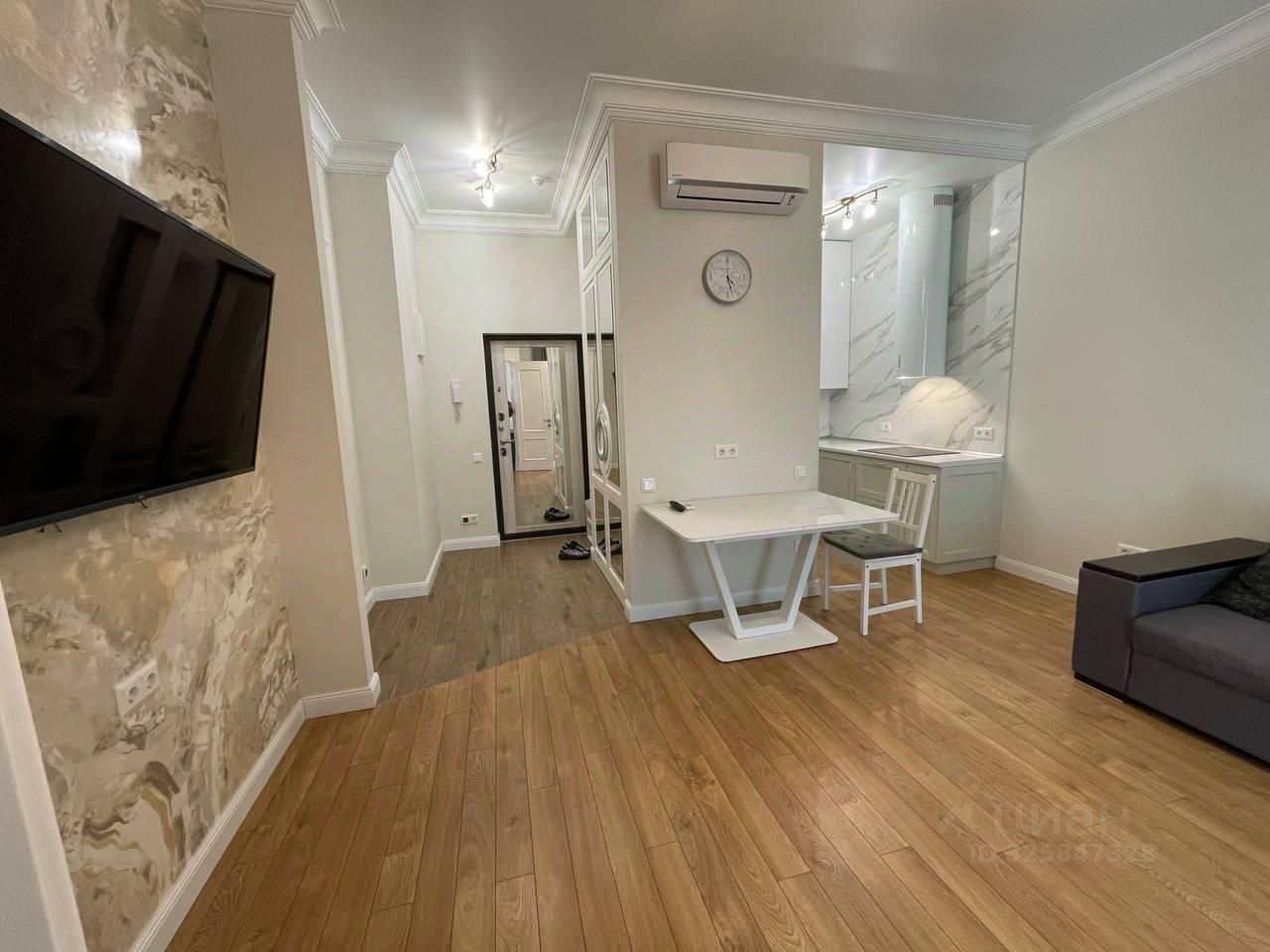 Квартира с евроремонтом, оснащена всей необходимой мебелью и техникой, чтобы вы могли заехать и сразу начать комфортно жить. В кухне есть холодильник и посудомоечная машина, в комнате — кондиционер и телевизор, а стиральная машина обеспечит простоту ухода за вещами. Санузел совмещенный с душевой кабиной, что удобно и современно. Дополнительное удобство создает лоджия.