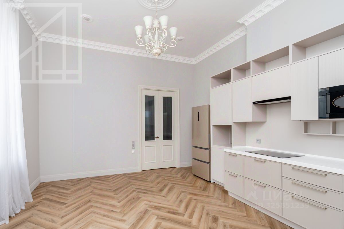 Планировка: гостиная-кухня-столовая, четыре спальни, два санузла. Потолки 3.8 м. Окна выходят на обе стороны. Ремонт выполнен в классическом стиле. Квартира частично меблирована, имеется вся необходимая техника для комфортного проживания. Показы по договоренности, заезд с 25 декабря