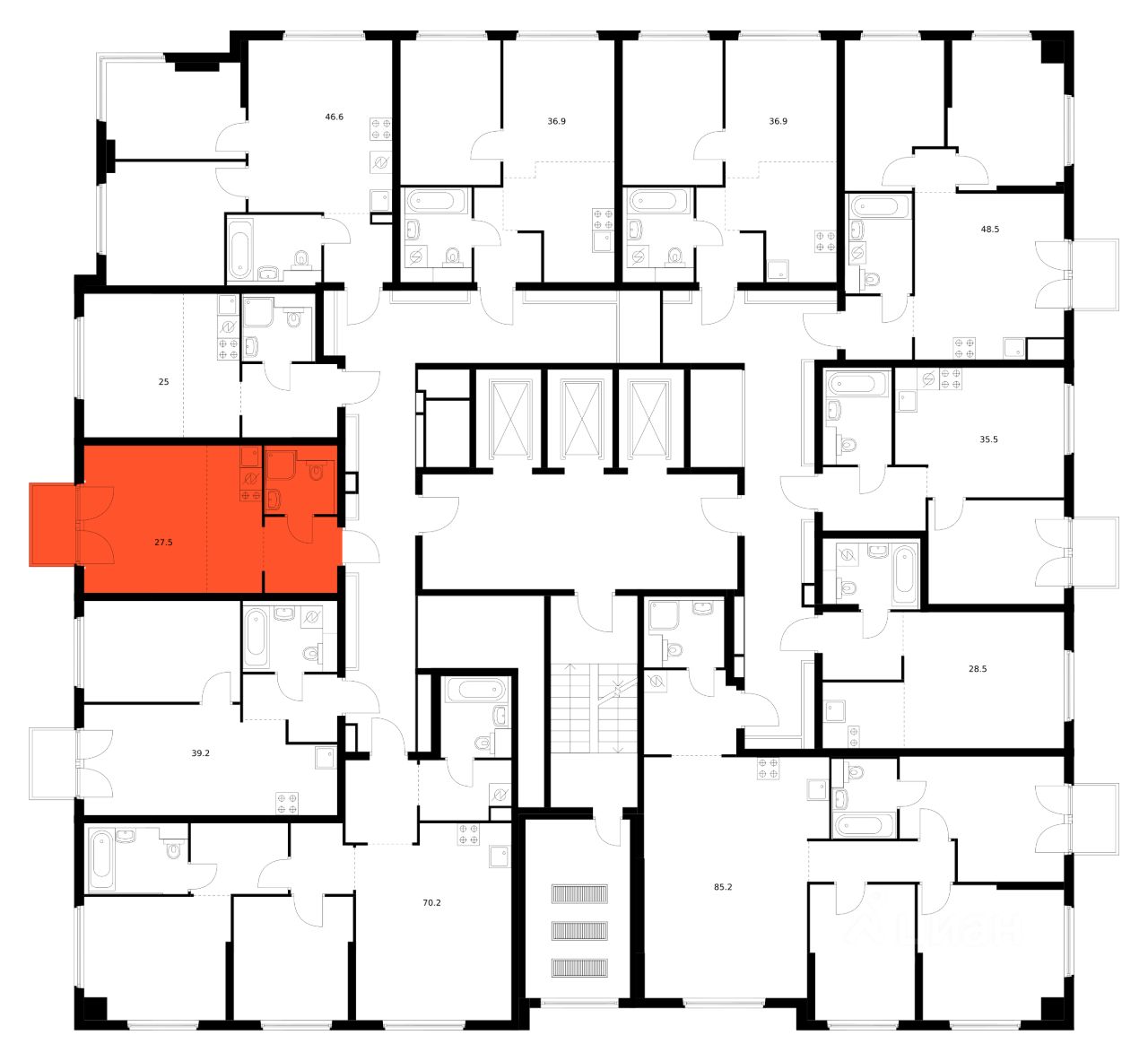 Продаётся квартира-студия площадью 27,5 кв.м на 3 этаже 12 этажного дома (Корпус 1.1.1, Секция 1) проекта ПИК Кронштадтский 9. Светлый просторный подъезд на уровне земли, функциональная планировка, большие окна, предчистовая отделка.