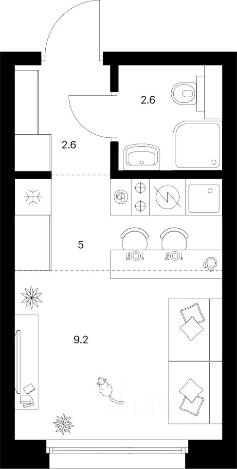 Продаётся квартира-студия площадью 19,4 кв.м на 12 этаже 14 этажного дома (Корпус 1.6, Секция 3) проекта ПИК Полар. Светлый просторный подъезд на уровне земли, функциональная планировка, большие окна, c отделкой.