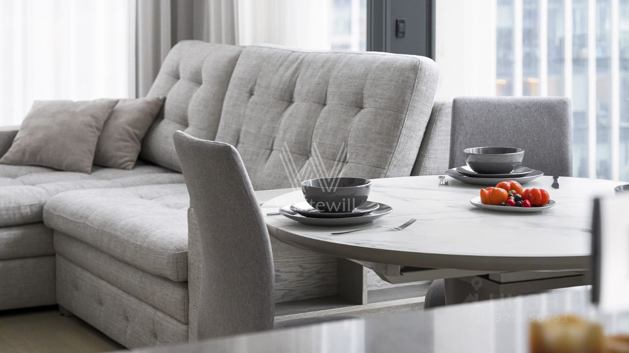Апартаменты площадью 91 м² в комплексе небоскрёбов премиум-класса Neva Towers. Апартаменты с двумя спальнями расположены на седьмом этаже в корпусе T2. Выполнена премиальная дизайнерская отделка в светлых оттенках, полная комплектация бытовой техникой и мебелью. Спланирована: кухня-гостиная, две спальни, ванная комната, санузел с душевой, прихожая. Из окон открываются панорамные виды на башни и территорию ''Москва-Сити''.