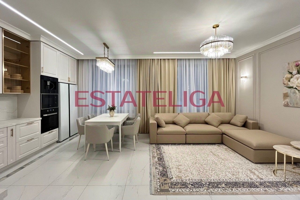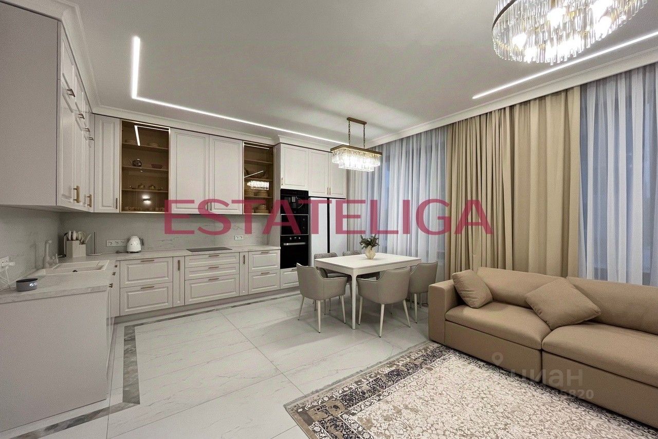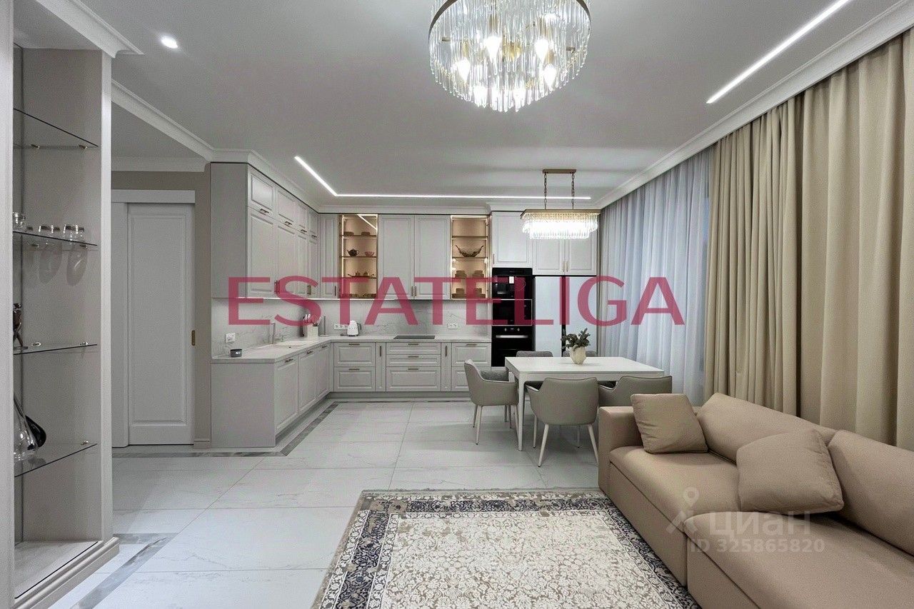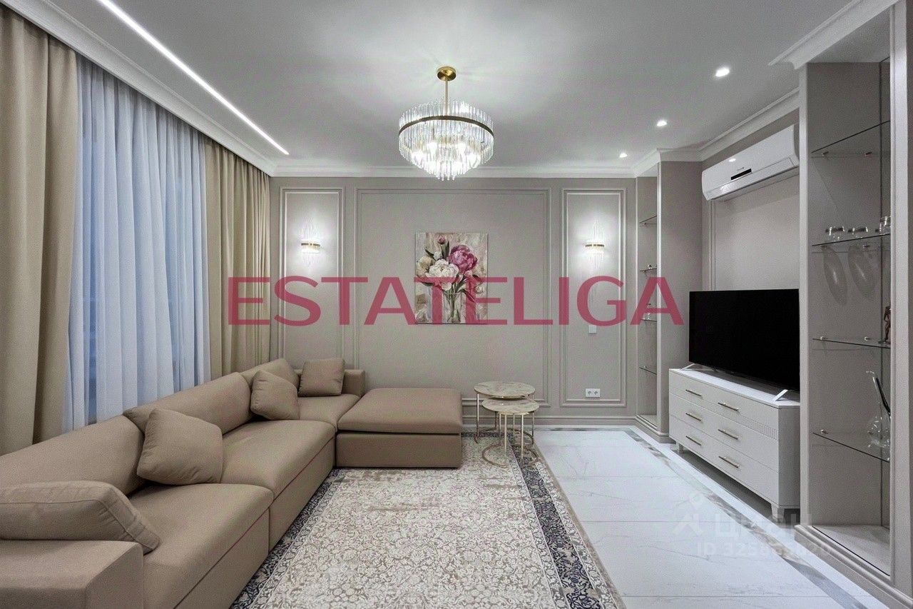 Квартира сдается впервые, после ремонта никто не жил! Функциональная планировка квартиры: просторная гостиная, плавно перетекающая в кухню, просторная спальная комната, вторая спальная комната с рабочей зоной и гардеробной, два совмещенных санузла, один из них с полноценным хаммамом, холл с местами для хранения, отдельная гостевая гардеробная.