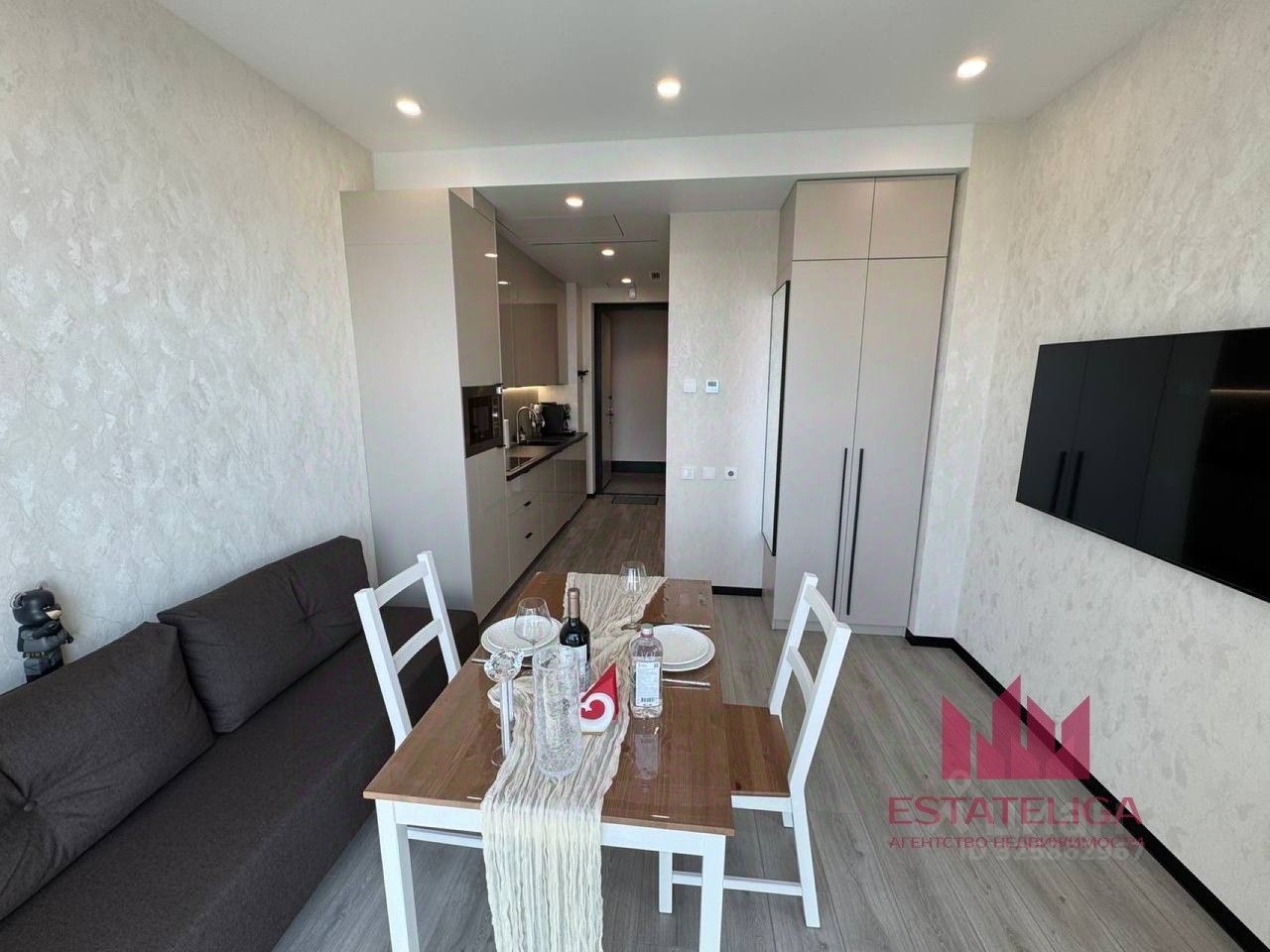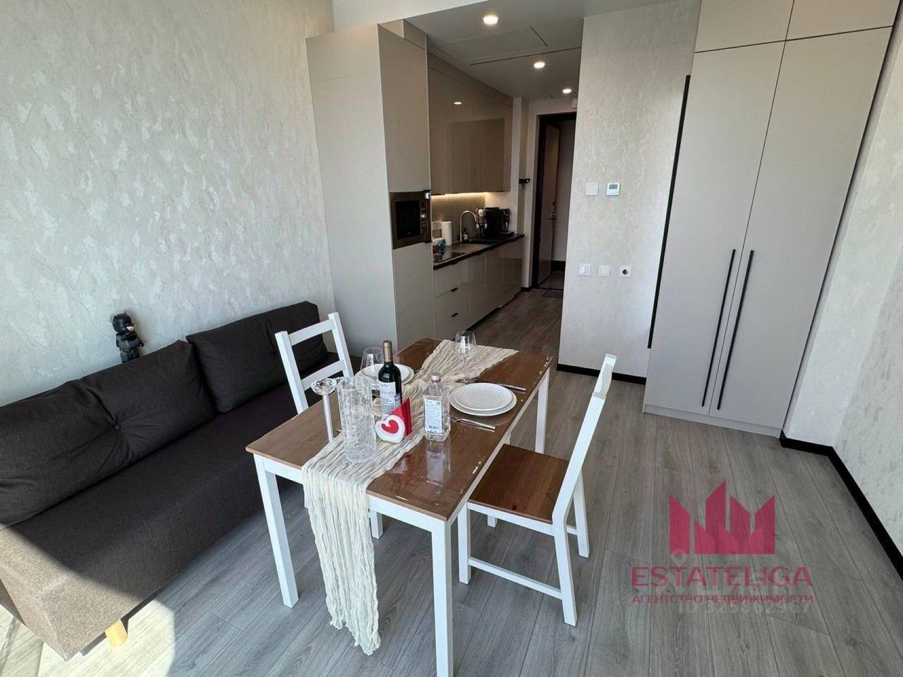 Описание квартиры: Площадь 27м. Пространство организовано функционально и стильно. Большая комната с зоной отдыха, кухня-гостиная, современная ванная комната и приватная зона спальни с живописным видом на город.